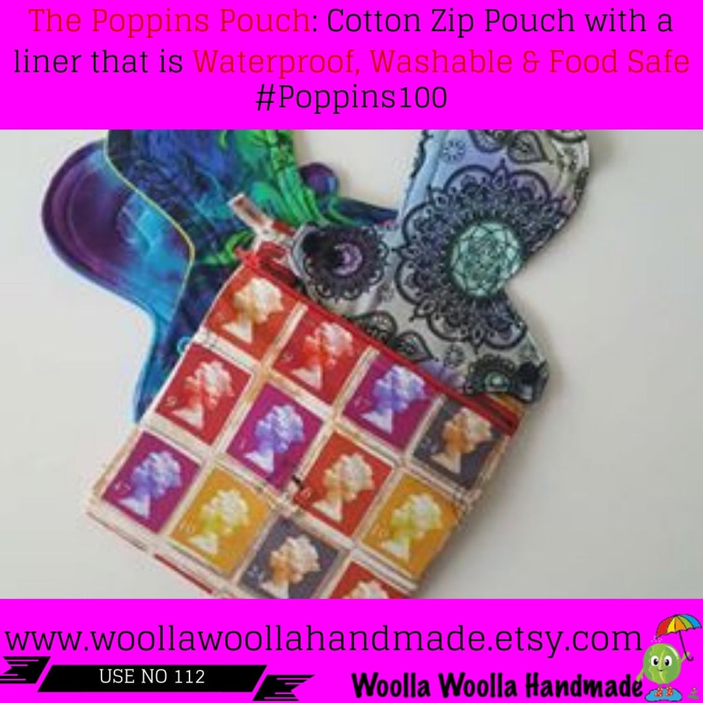 Washable Lunch Bag: Bi Plane Print, Waterproof Lined Poppins Pouch